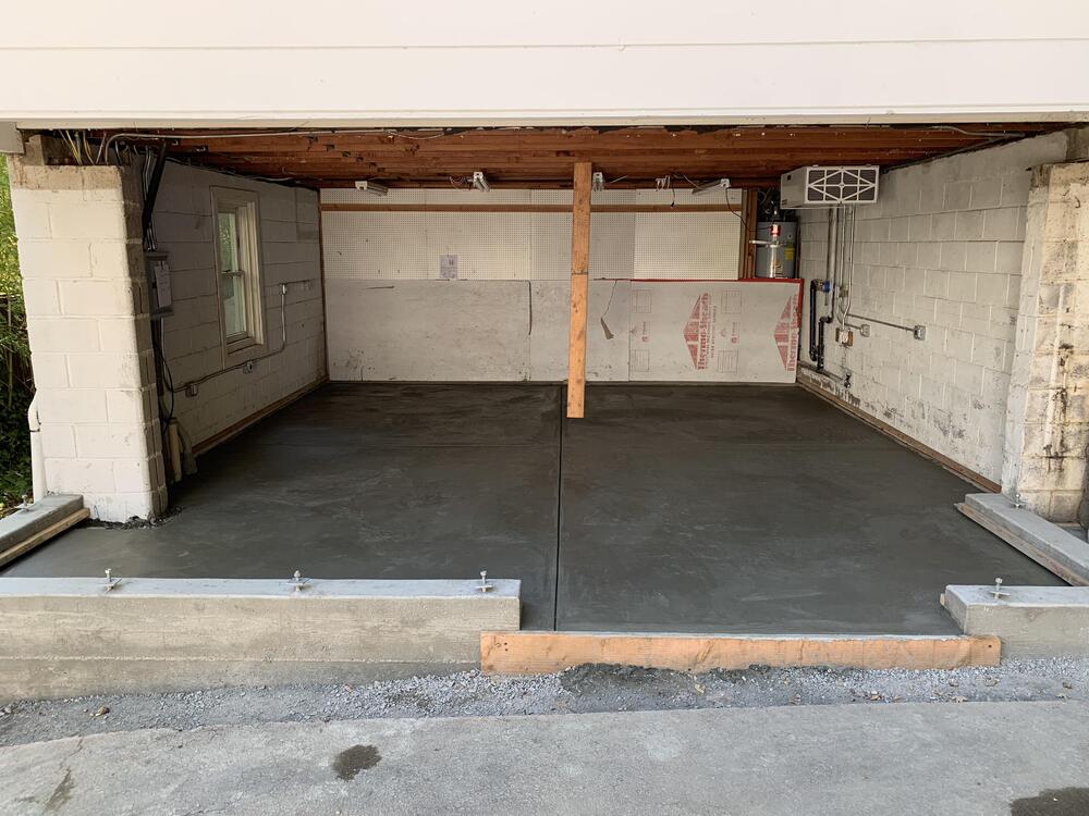 Correct! The contractor thought the extra steel was worth the small difference even where he could have used 3 or 4. The lally column on the left that is hidden behind the wood brace was wrapped with rebar to really tie it in. Both columns were undermined part way so that they key into the footings under the foundation wall. The temp posts and beams will come out when they remove the forms from the shop side of the foundation wall. The new slab will be tied in as Steve described and will top out five inches below the top of the foundation wall. A big improvement over the prior garage slab that ranged from 2.3-3" with no rebar and the lally column pads were just on dirt.