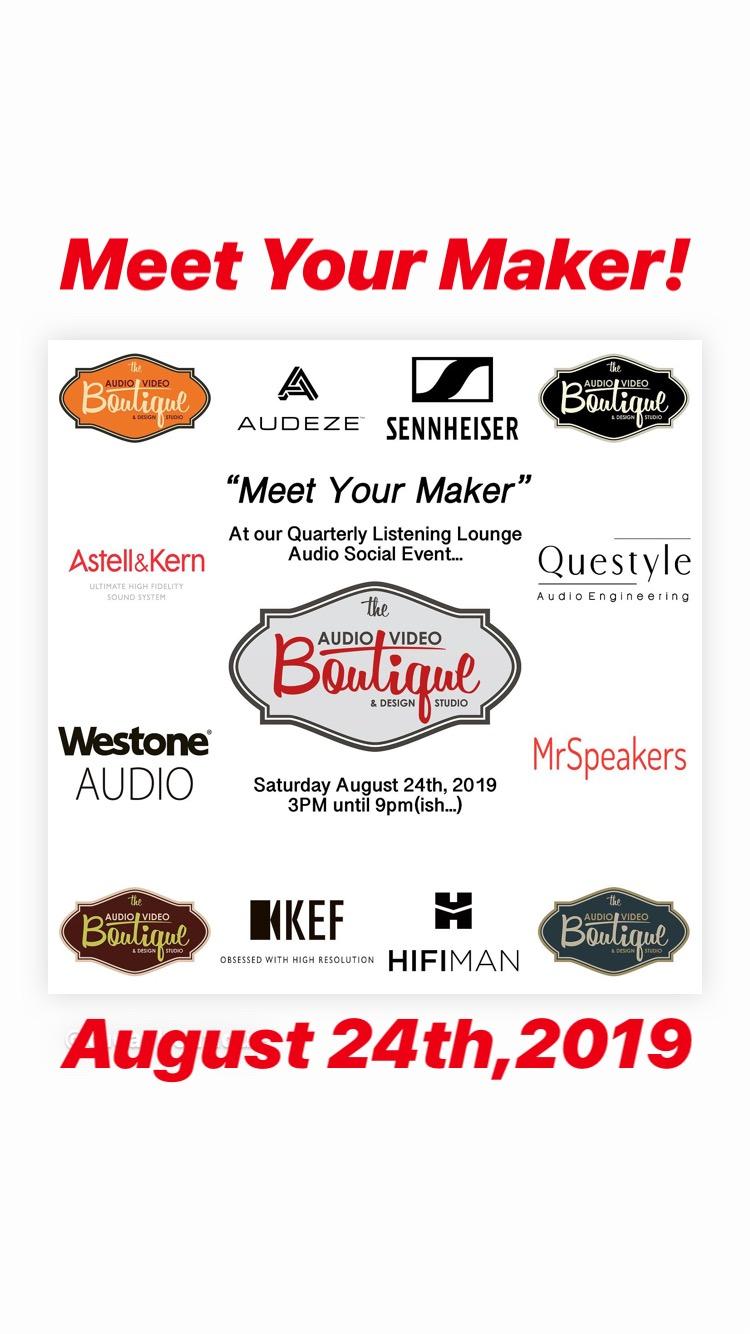 Hello Everyone,, I have a small Boutique Headphone and Personal Audio spot in Las Vegas and wanted to share info about our Quarterly “Listening Lounge” Headphone Socials... It's That Time Again People... Our Quarterly Audio Social is slated for August 24th, 2019 and you are cordially invited to attend. This Event is being labeled "Meet You Maker!" We have contacted and confirmed 8 Product Manufactures to be present for this quarters Listening Lounge Audio Social... They will have a Factory Representative at the event to assist with product demonstrations, educational information, as well as any product related questions or input from your point of view. Our Official Headliner is Sennheiser with their HE1 Orpheus System! The following Brands have also confirmed their participation: Questyle Audio Sennheiser Astell&Kern Ultimate High Fidelity Sound System Westone Audio Audeze MrSpeakers Hifiman Electronics MAG-LEV AUDIO KEF This particular Listening Lounge Event is completely geared to the Head-Fi and Audio Enthusiast, so save the date and make your travel arrangements now so that you don't miss out. Light-Bites and Refreshments will be on-hand and sponsored by our Downtown Associates at Rachel's Kitchen so come Hungry! If you know of some friends and likeminded peeps that you may want to hang-around with and listen to some of the best gear available, make sure to tell them about it... We look forward to seeing you all again, or for the 1st time, in our Lil Slice of Downtown Las Vegas! Let's Do This! Marshall JT The Audio Video Boutique