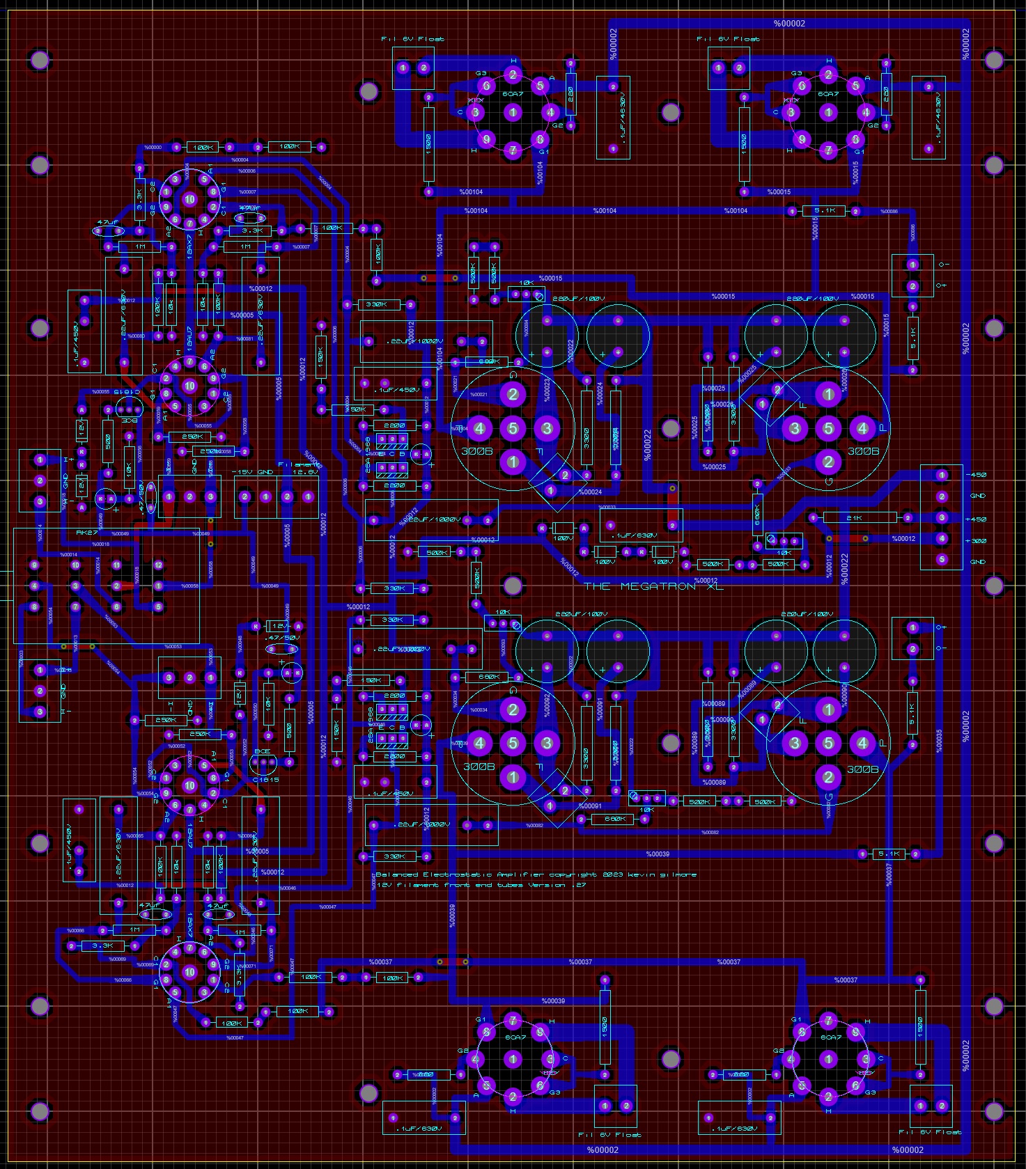 kevin gilmore Posted March 24, 2023 Author Report Posted March 24, 2023 (edited) so i posted this elsewhere because people really want to spend large amounts of money on an electrostatic amplifier that uses a pile of 300b. this is the first of two. Megatron xl with 4 x 300b Megatron xxl with 8 x 300b Power supply #1 goldenreferencehv all solid state Power supply #2 tube rectified lc filtered no regulation solid state regulated bias. Power supply #3 tube rectified lc filtered 4 x 6l6gc fully regulated voltages. 300 volt tube rectified and 6bq5 regulated power supply. solid state regulated bias high voltage rectifier tubes are gz34 (5ar4) 300v rectifier tube is ez81 I figure a megatronxxl with power supply #3 should come in at a retail built price of $40k evidently one or more companies are making dc supplies that slam 7 amps into cold 300b resulting in tubes that don't last very long. so this will have a slow start quad 5v power supply board. the xxl will have 2 of these boards. amp chassis will be about 14 x 14 x 4 inches. power supply box should be the same size. the spice simulations indicate that minimum distortion is set at about 33ma, so this is likely to eat about 300 watts total power consumption. distortion will end up about .01% at full voltage swing. Edited March 24, 2023 by kevin gilmore 9