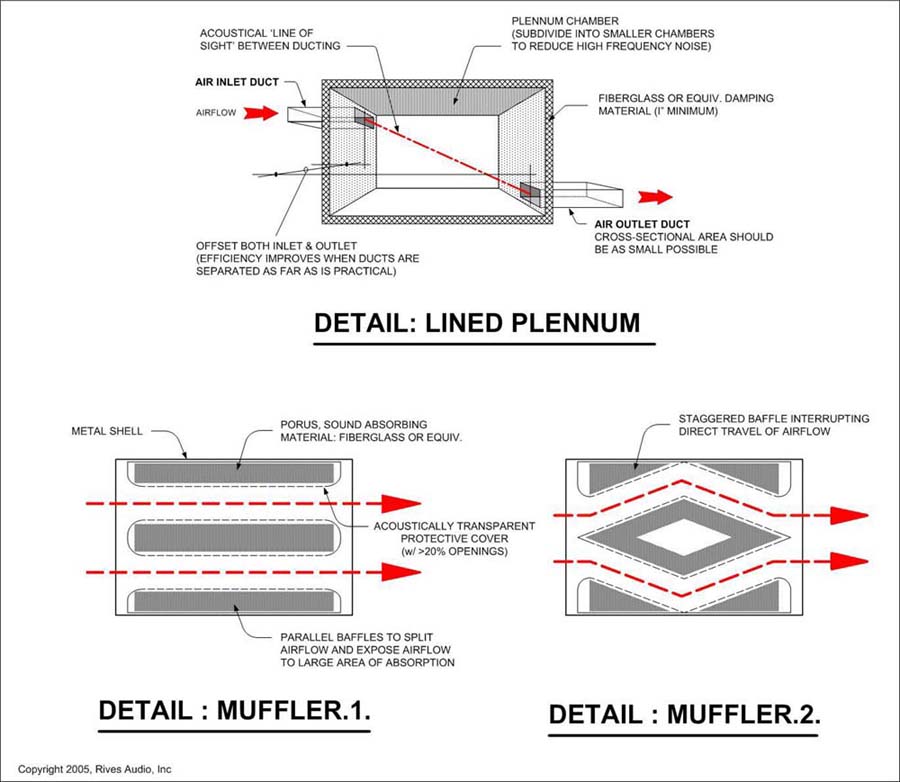 Tyll Hertsens Posted February 20, 2013 Report Posted February 20, 2013 I have a vague recollection that putting a 360 loop in vent ducts dramatically reduces its ability to transmit sound. Prolly should go look in my "Handbook for Sound Engineers." ......goes and looks.... Nothing about 360, but they do suggest a "plenum." http://www.audioholics.com/education/acoustics-principles/a-guide-to-sound-isolation-and-noise-control/fig3hvacsystemsehx.jpg/image_view_fullscreen