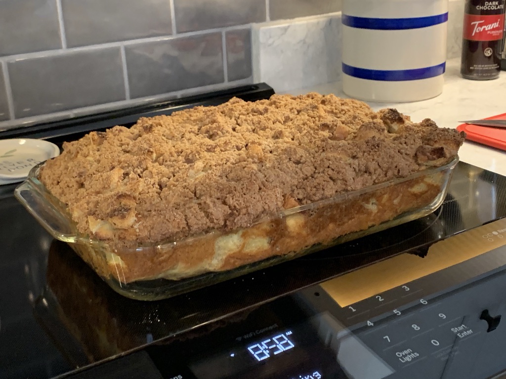 n_maher Posted December 6, 2020 Report Posted December 6, 2020 Debated on where to put this seeing as it is not scratch made dough, but figured it was bread based so this is where it landed. I had a leftover loaf of white bread and wanted French toast but did not want to deal with the hassle of making it piece by piece. The solution (which arguably was more work, but whatever...) was to make a casserole. It's a pretty standard recipe - eggs, milk, brown sugar, cinnamon, and vanilla poured over cubed bread. The topping is just flour, more brown sugar, more cinnamon, a pinch of nutmeg, and cut with cold butter. Bake for an hour and voilà, breakfast. 2