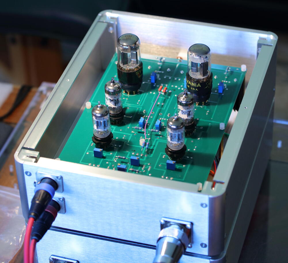 mwl168 Posted April 29, 2016 Report Posted April 29, 2016 (edited) I have received requests to share my adjustment procedures so I thought I would post it here in case others are interested. These steps are based on combination of compiling the excellent information JimL has posted and my own experience. All the trim pots except the 5K ones are for adjusting current setting of the current sources and sinks. And since they all use DN2540 which has quite a variance among samples, these setting will vary but the pre-set values in step 1 should provide a good starting point. You'll then need to fine-tune them a bit. Here are the adjustment/fine-tuning steps of the SRX Plus in sequential order: 1. Initial setup before first power on: (assuming 7mA of output current per triode of the 6SN7GTA/B) Output current source (the 4 100 ohm trim pots close to the large heatsinks): adjust the trim pots to 55 ohm if you are using 180 ohm in-series fixed resistor (250 ohm on silkscreen). These trim pots set the output current of the 6SN7GTA/B Output current sink (the 2 20 ohm trim pots between the upper 12AT7 tubes): adjust the trim pots to 12.5 ohm if you are using 75 ohm in-series fixed resistor (102 ohm on silkscreen). These trim pots set the current sink of the 6SN7GTA/B. Input current sink (the 2 500 ohm trim pots): adjust the trim pots to 410 ohm if you are using 1.2K ohm in-series fixed resistor (1.4K ohm on silkscreen) . These trim pots set the plate voltage of the upper 12AT7 (the ones closer to the 6SN7GTA/B). Adjust the 2 5K trim pots to be in the mid-point. These trim pots are used to balance the voltage of the plates of each of the two triodes of the upper 12AT7 so they are equal. The 5K pot and the 500 ohm pot will interact with each other a bit. 2. Insert all the tubes and power up the amp. If you have a variac, I recommend that you use the variac to gradually bring up the voltage for the first time especially if you are using NOS tubes that have not been powered on for a long time. 3. Check to see if all voltage (filament supplies, B+/B-, and the -20VDC) are all as expected and all the tubes lit up as expected. If everything appears normal, let the amp warm up for about 10 minutes before carry on to next steps. 4. The goal of this step is to set the output current of the 6SN7GTA/B to the desired value (7mA). Measure the voltage drop of the 100 ohm resistors of the output CCS (the 4 resistors between the large heatsinks and the .1uf/400V caps by the edge of the PCB). They should measure about 0.7VDC (0.7VDC/100R = 7mA). Adjust the 100 ohm trim pots to get the 0.7VDC voltage drop on these 100 ohm resistors. 5. The goal of this step is to set the output current sink to 17mA, 3mA higher than the output current. Measure the voltage drop of the 100 ohm resistors of the current sink (the 2 resistors between the 20 ohm trim pots and the single .1uf/400V cap between the two lower 12AT7 tubes). They should measure about 1.7VDC (1.7VDC/100R = 17mA). Adjust the 20 ohm trim pots to get the 1.7VDC voltage drop on the 100 ohm resistors. 6. The goal of this step is to set the two plates of each of the upper 12AT7 to be equal and about mid-way between B+ and ground. So if you are using B+ of 360VDC, the mid way is 180VDC. First attach the DMM probes to each of the two .22uf/1000V coupling caps where they are connected to the plates of the upper 12AT7 and measure the DC voltage between them. (in my case. I purposely left the leads of the coupling caps sticking out a bit so I can clip the DMM probes on them. With the 5K trim pot set at its mid-point, the measured DC voltage between the two plates tells you how well matched are the two triodes of the 12AT7 tubes used. If they are well matched it should be within 5 VDC or so. If it's more than 20VDC you may have problem**.) Adjust the 5K trim pot so the measured voltage is close to 0VDC. Next, move one of the DMM probes and clip it to the power ground (leave one probe still connected to one of the coupling caps) and adjust the 500 ohm trim pot so the measure voltage is about 180VDC (half of the B+). The adjustment of the 500 ohm and the 5K trim pots will interact with each other so you'll need to go back and forth a bit. 7. Let the amp warm up for another 15 - 20 minutes for the tubes to reach their stable operating state then repeat the adjustments again. Measure the balance via the headphone jack like you do with other Stax amps. If the two triodes in each of the 6SN7GTA/B are well matched you should see around 1 or 2 VDC or so. And this is perfectly fine. 8. Measure the offset via the headphone jack like you do with other Stax amps. Adjust the 20 ohm trim pot (output current sink) to bring the offset as close to 0 VDC as possible. 9. Assuming all adjustments are carried out without problem, you are done and ready to listen to music now ? This is an all tube amp without servo so the offset and balance etc. will never be spot on and will vary and drift a bit every time you power on the amp. That’s to be expected. 10. There is an optional step which I have not done myself - you can adjust the 2 100 ohm output CCS trim pots to bring the balance of each channel to 0 VDC. I have not felt the need to do it (maybe I got lucky with the tubes I have). If you choose to do so, try to adjust both trim pots in a converging fashion instead of adjusting only one of the two pots. You'll also need to "coordinate" this with adjusting the 20 ohm pot in step 8. Hope this helps. JimL and others please chime in and correct me. ** In my experience, with the 5K trim pot centered, if the voltage difference between the two plates of the 12AT7 is greater than 15VDC or so, you should still be able to adjust it to 0 VDC but you may encounter problem with buzzing noise. You can move the 12AT7 tubes around to minimize this voltage difference. In my experience, it's more important to have the lower 12AT7 (the one closer to the 5K trim pot) well matched to bring this voltage difference dow