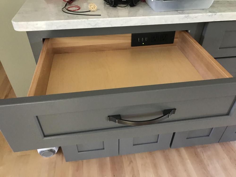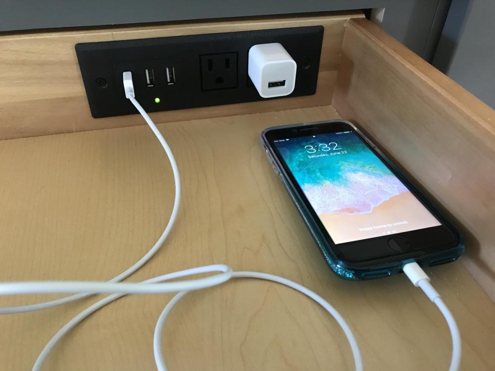 DIY'ed a charging drawer using a cheap conference room table fixture from Amazon. Much cheaper than the commercial products that run around the $300 mark.