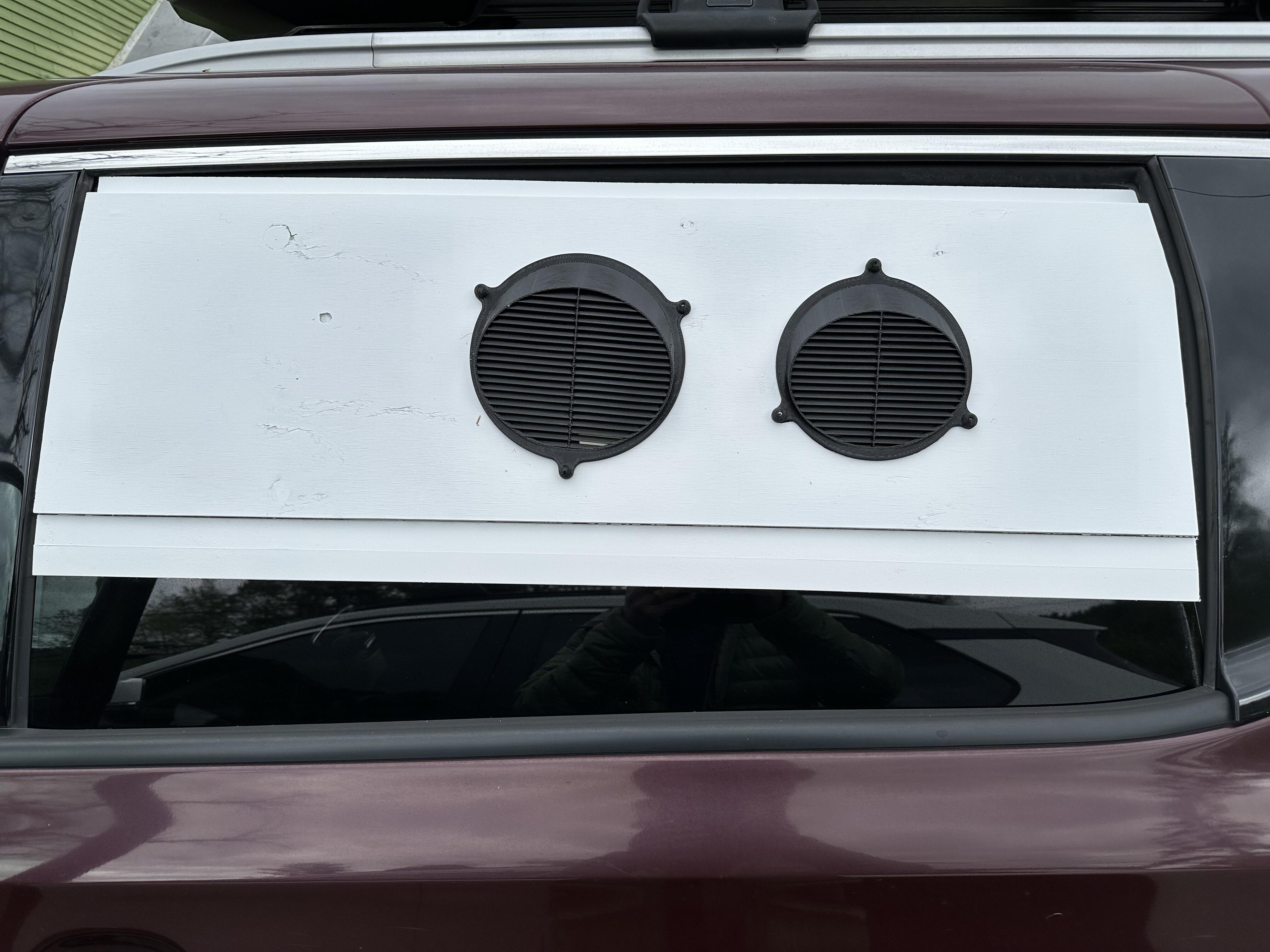 Built a vent board for our van AC unit that fits in the back window since they do not provide one and the only prebuilt one was really pretty cheap. This one is much more solid.