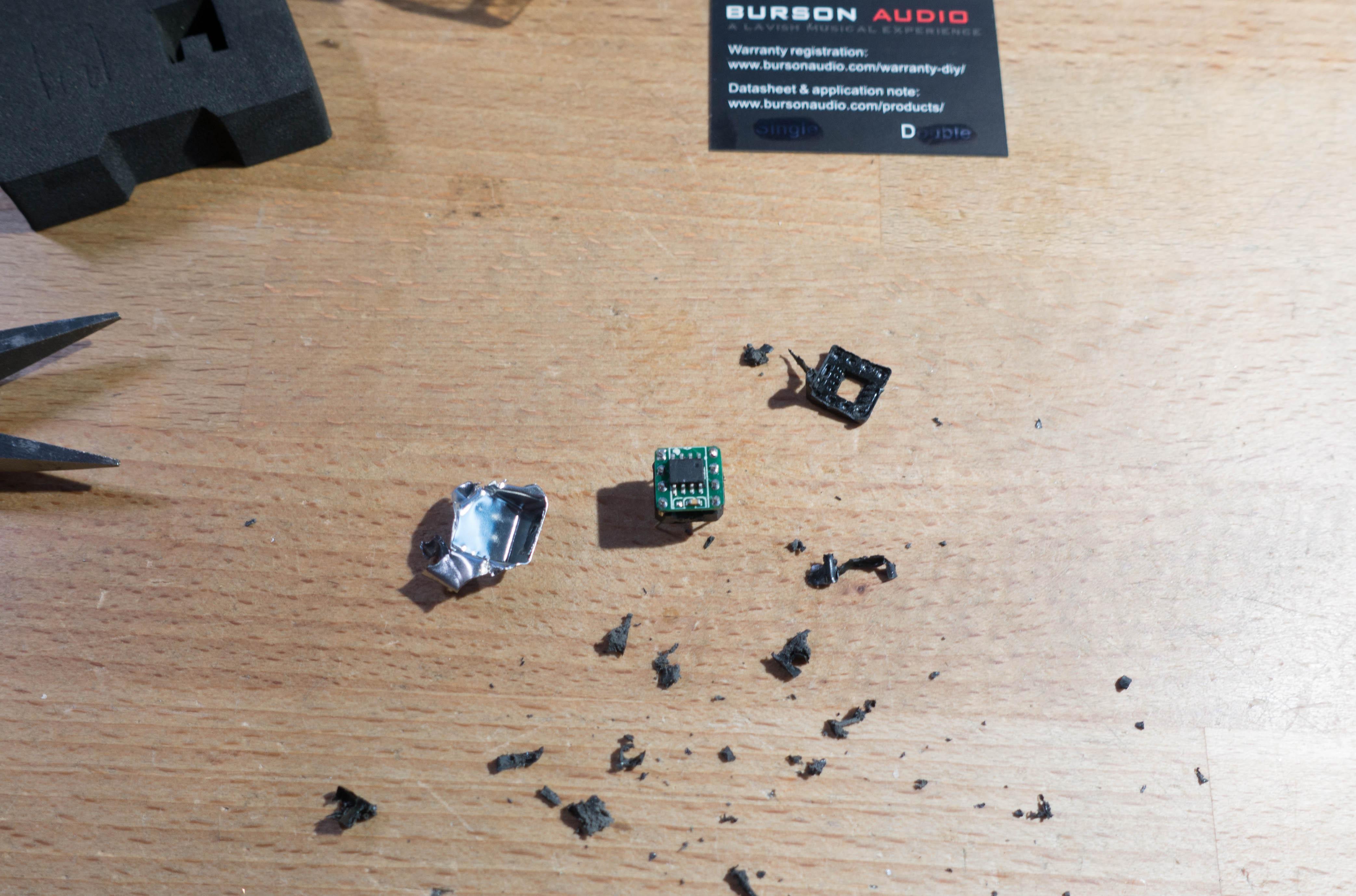 spritzer Posted April 12, 2019 Report Posted April 12, 2019 ....so I bought one of these. They popped up on Massdrop while I was talking to Kevin who immediately called BS on this. My curiosity peaked, I had to get one. Here is the product page: https://www.bursonaudio.com/products/supreme-sound-opamp-v5i/ BS meter is tingling so I waited for it to arrive: Nice enough box and here are the internals: I forgot to take a picture of the top but it looks exactly as it did on the page. Here is the bottom though: The potting compound is pretty soft so here is what I found: So... the only thing in there is an opamp with the top markings sanded off and one small cap. There is nothing on the bottom, just this. We have no idea what opamp that is but it would be pretty simple to dissolve the resin and look at the die. I very much doubt this is some custom one off unit, why would they sand off the top if it was some custom device? Also, why is that cap there? I mean this is a dual opamp so two channels and two power rails...why one cap? This reminds me of the Single Power tube adapters, they had parts for just one section of the dual triodes...why I just don't know. 2