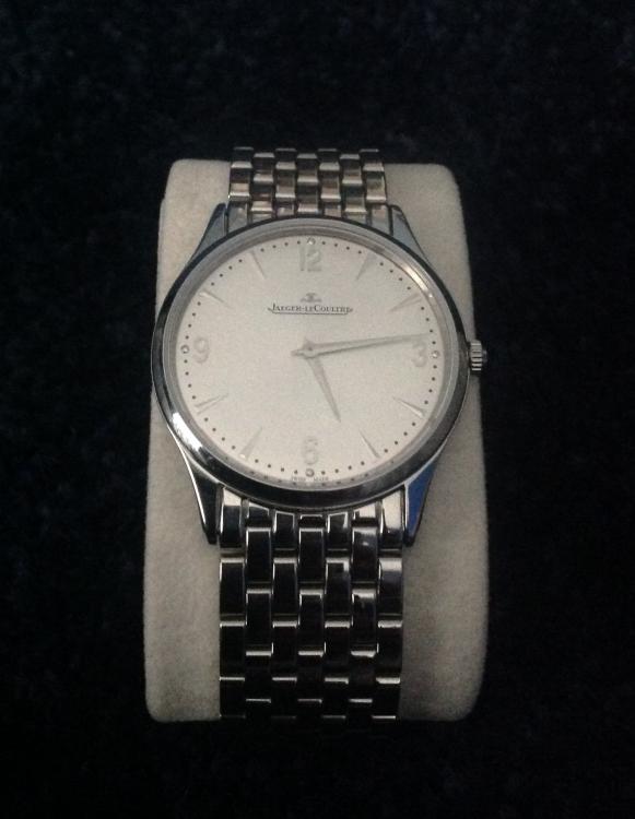 Dave R Posted August 23, 2017 Report Posted August 23, 2017 Had my JLC Master Ultra thin sent to be serviced in July, and while that was being done thought I'd have a JLC SS bracelet fitted. I was told it could take up to October before everything was done, but I'm pleased I received it today and it looks brand new, although the bracelet is. Now I was happy with the brown leather strap that was originally on my JLC, but much prefer the look of their bracelet, and it looks even better in real life. This SS bracelet does make the watch heavier, but it's still extremely comfortable. Anyway for comparison the first photo is of a master UT ( not mine ) with a brown strap, and others of my JLC with that bracelet.? 4