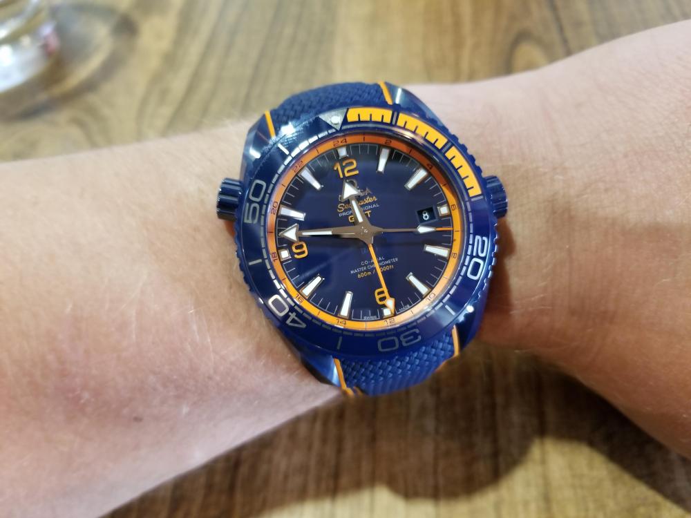 SeaWolf Posted June 9, 2019 Report Posted June 9, 2019 (edited) Its a fun watch especially for the summer. The blue can look quite different depending on the lighting. It goes from a deep navy to a rich royal blue. The rubber strap is also supper comfortable and perfect for hot weather; I love that you can wear rubber straps relatively loose and the watch wont move because the rubber grabs your skin. I also think they did the GMT function well on this particular watch with the inner chapter ring, that way you still keep a functional dive bezel. The numerals, indices, Omega txt, Omega logo and 'GMT' are all applied not printed. And something that other manufacturers are finally picking up on: a dial colored date wheel. This watch does highlight one issue I have with my 2018 Seamaster diver 300m.. I have the bracelet and a factory NATO for the 300m, but I would love to have a rubber strap for it too. However unlike the factory Planet Ocean rubber strap which has a wonderful titanium and ceramic deployment, the diver 300m factory rubber strap is a pin buckle. At this price point the Diver 300m should also have a deployment. Edited June 9, 2019 by SeaWolf 1