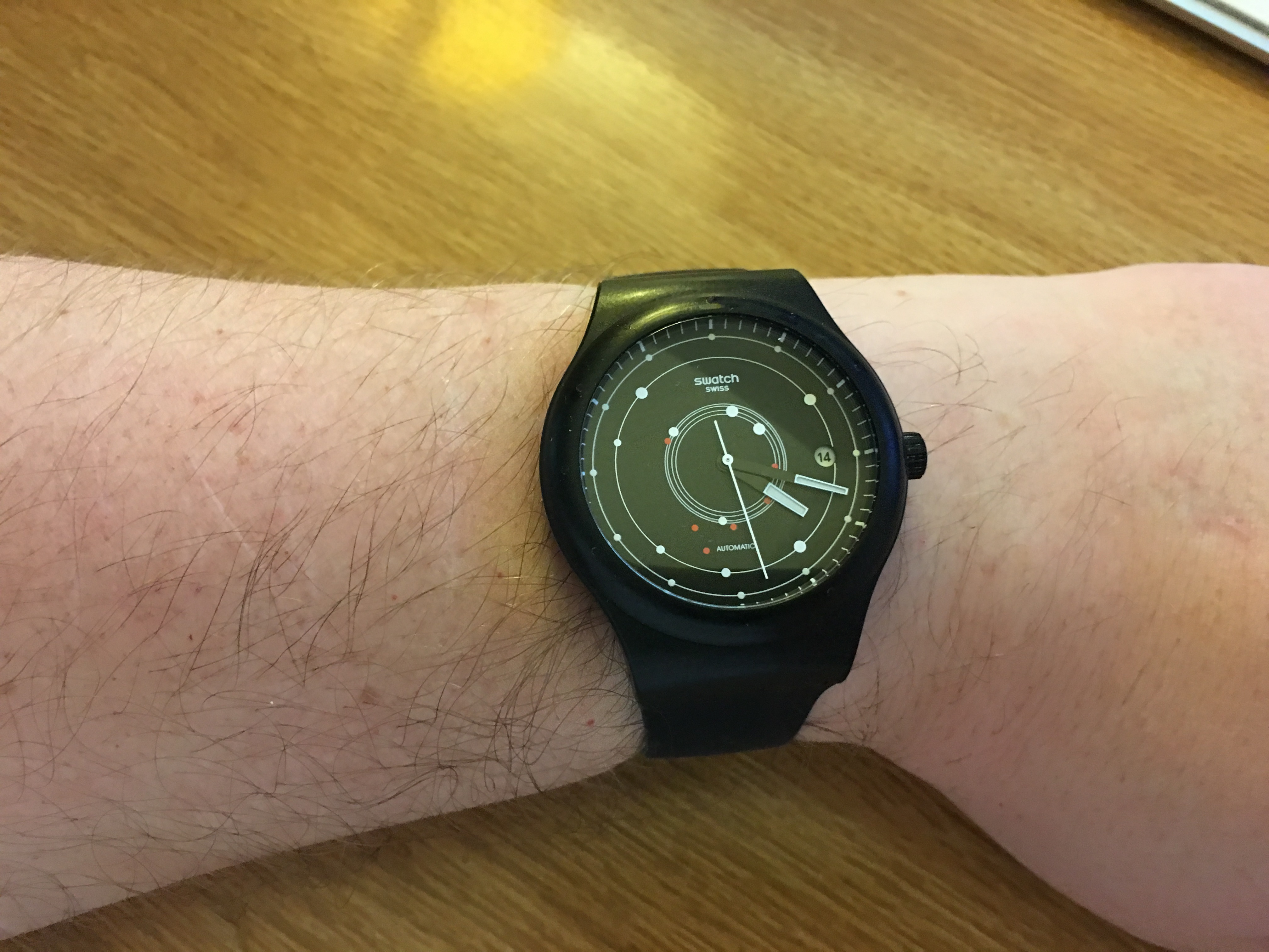 EdipisReks1 Posted March 14, 2017 Report Posted March 14, 2017 (edited) I found my Sistem51, today! It was resting between a piece of soft plastic and a velvet bag, in a drawer. There were marks on the case from both the velvet and the soft plastic. Swatch could have gone with a better grade of polymer, I think. Seiko makes a pretty amazing watch for a lot less money. :-/ Still, it's incredibly comfortable with a silicone strap, and now that the bezel dots have worn off, it might even be black enough for Dusty. I may keep it on for the rest of the week, though I'm not sure if it will survive a shower... Apparently it will! Not that I bathe or swim with watches very often, but I've been known to be insensate going to bed, and equally insensate getting up in the morning. The Reverso survives it no problem, though I've only "tested" that with the Shell Cordovan strap (one would hope that a Crocodile was waterproof, though). Edited March 14, 2017 by EdipisReks1