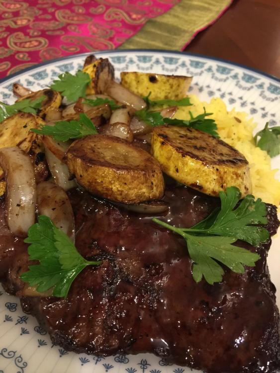 crappyjones123 Posted December 8, 2016 Report Posted December 8, 2016 Tonight we have skirt steak seared with yellow squash and white onions in a sweet pineapple glaze over yellow jasmine rice cooked with cardamom, saffron fennel and garlic. 1