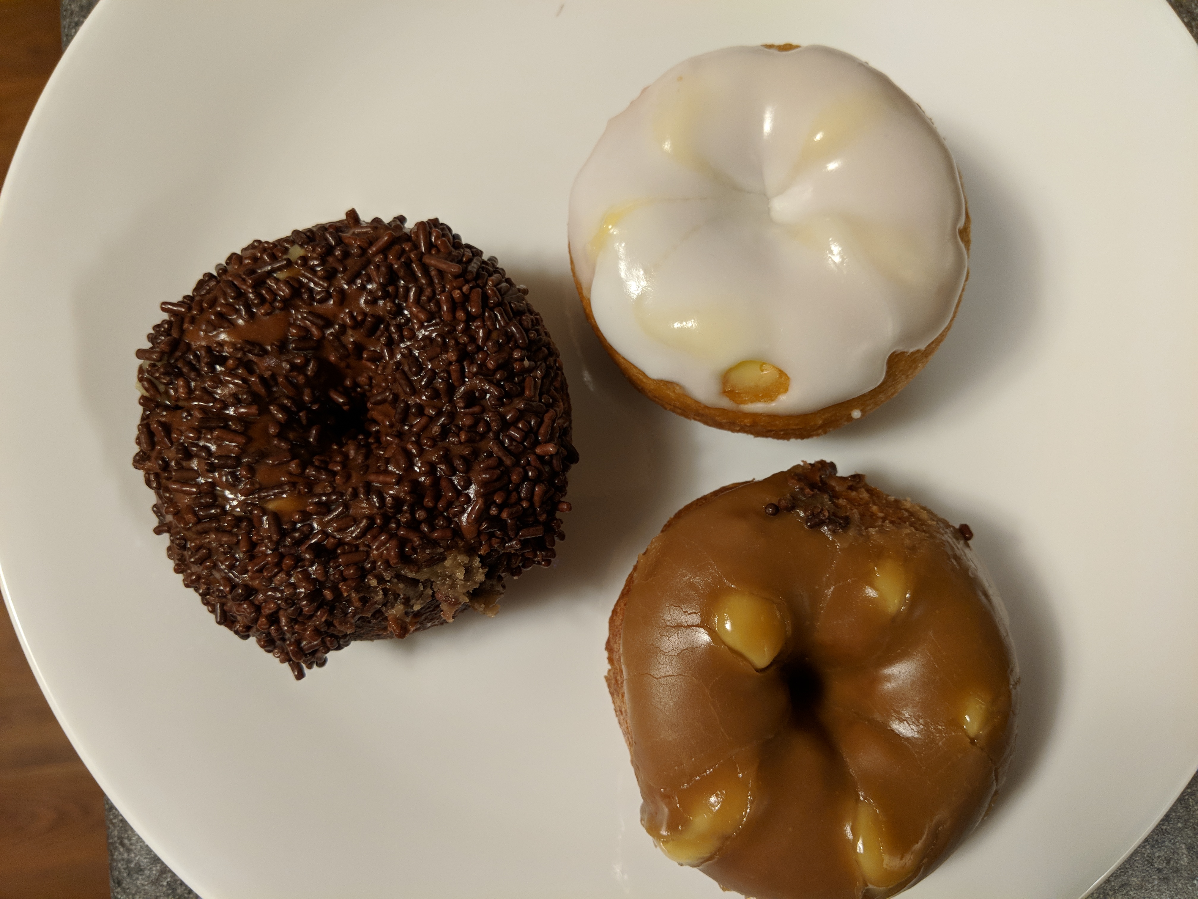 tkam Posted November 5, 2017 Report Posted November 5, 2017 Breakfast Donuts: Chocolate donut w/ bavarian creme filling + chocolate frosting + chocolate sprinkles Vanilla donut w/ bavarian creme filling + vanilla frosting Pumpkin donut w/ bavarian creme filling + maple frosting 3