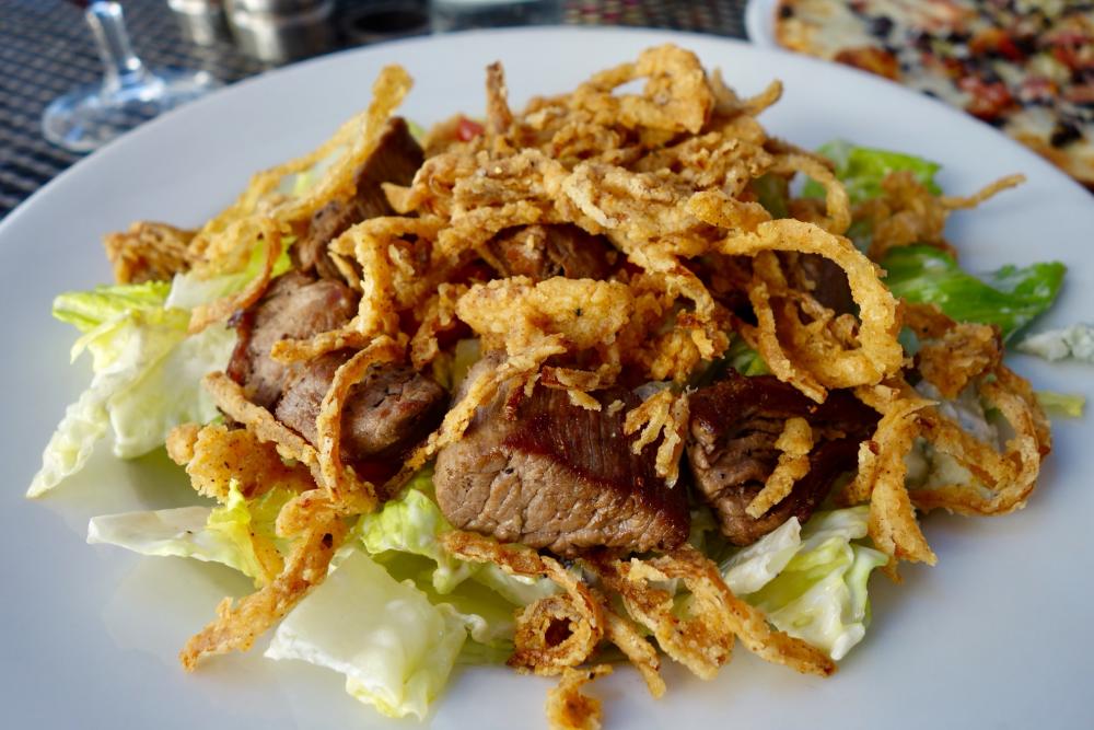 Grahame Posted March 31, 2018 Report Posted March 31, 2018 BLACK & BLUE Pan-seared filet mignon tips, tomatoes, Point Reyes blue cheese on romaine with blue cheese dressing & crispy fried onionsHARVEST Bacon, mozzarella, dried champagne grapes & rosemaryWARM PEAR TART Puff pastry baked with pears & cinnamon streusel, vanilla ice cream & caramel sauce 8
