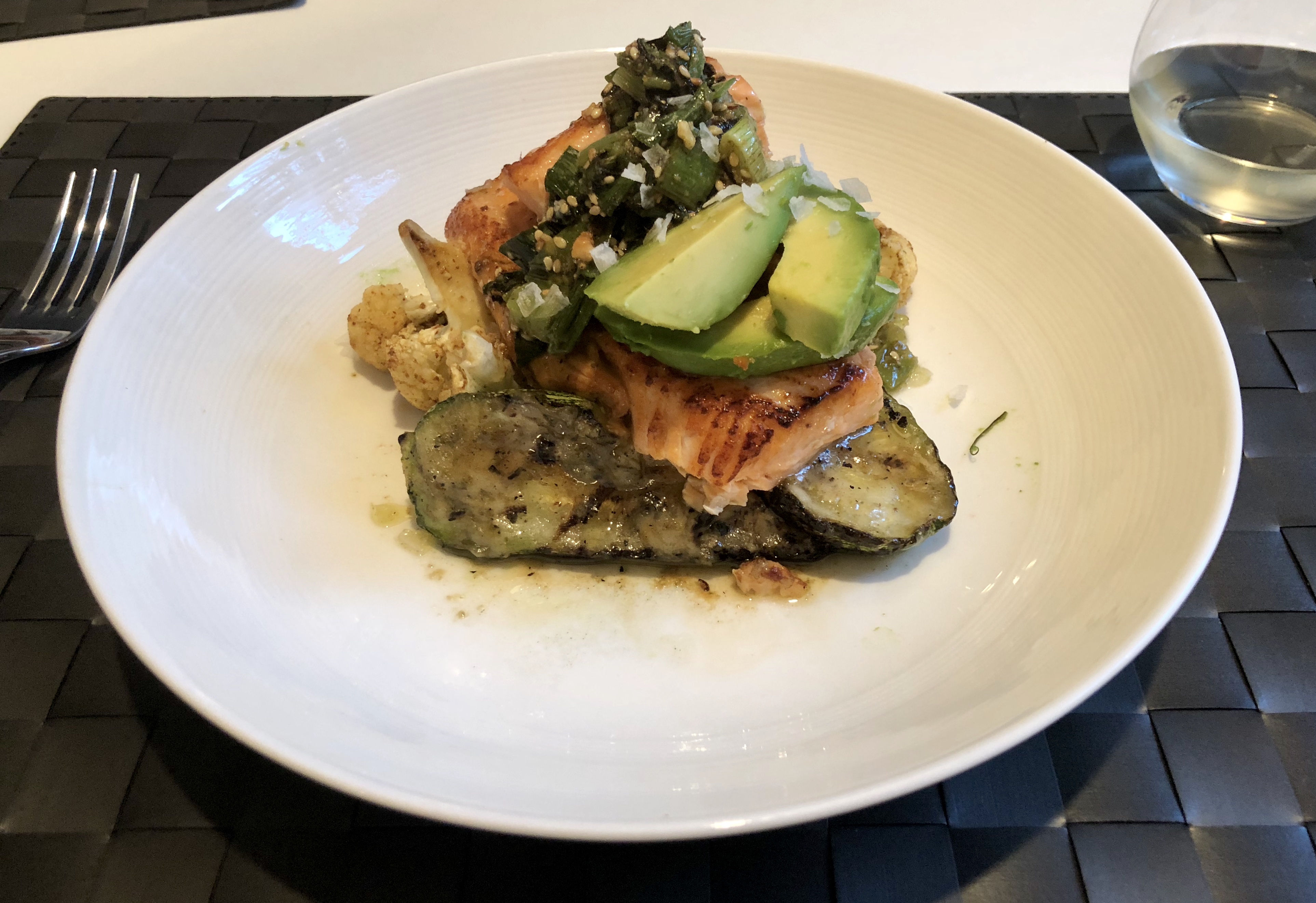 Hopstretch Posted May 1, 2018 Report Posted May 1, 2018 Brown butter salmon with grilled summer squash, cauliflower, avocado and dukkah. 1