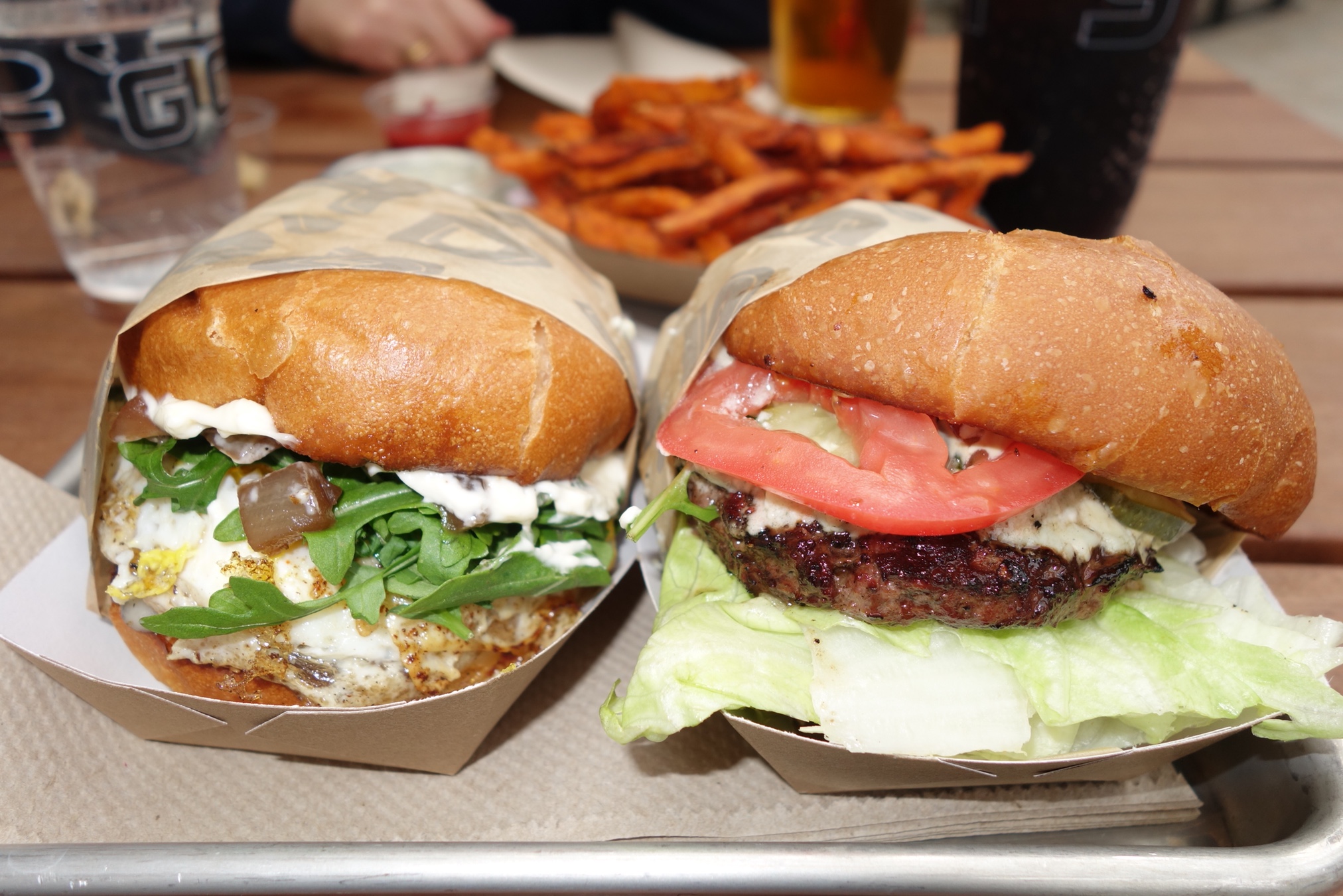 Grahame Posted May 5, 2018 Report Posted May 5, 2018 CALIFORNIA BURGERFried egg, swiss cheese, Zoe's bacon, arugula, balsamic onions and mayo on a toasted egg bun.BLUE CHEESE BURGERPoint Reyes crumbled blue cheese, lettuce, tomatoes, pickles & secret sauce on a toasted egg bun.SWEET POTATO FRIESChili spice-dusted & served with house-made ranch. 4