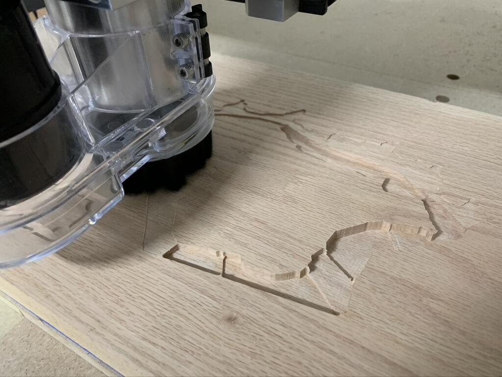 Not nearly as exciting as some of the other entries here but I got the east coast ping pong table back up and running today, with integral dust extraction, for another retirement plaque.  The plaque itself probably doesn't look all that impressive, but the multiple layers/depths, and clean up to have it look decent represent about 2-1/2 hours of programming - and that's after finishing the design.  Upside is that I taught myself some stuff, downside is that I've got two more projects to complete this weekend due to the number of people retiring at work.  I'll post some details on those soon enough as they use some truly incredible materials.