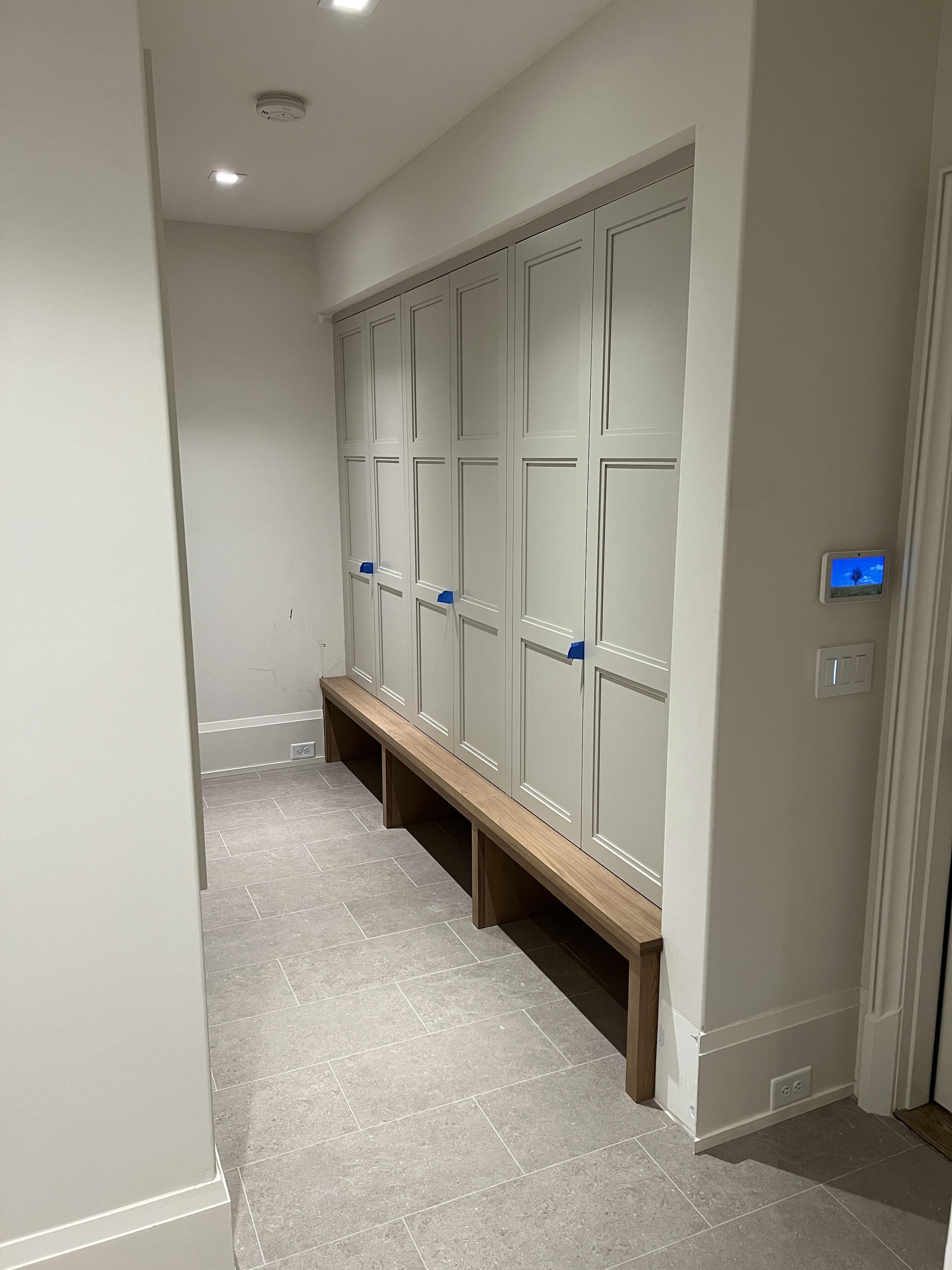 Hopstretch Posted October 11, 2023 Report Posted October 11, 2023 Hi gents. A rather random question for the hive mind. This is the new mudroom-in-progress. During the design, we opted to keep the "seat" small to preserve full width access to the elevator that's in the left corner of the space. Sadly, we were a little too conservative and it's ended up looking downright vestigial. It's just under 6" and really needs to be at least 8" to be much use. (That's what she said!) I'm wondering if there's any practical way to add a "lip" extension made from the same wood. Obviously it would be load bearing -- a considerable load in my case -- so secure attachment would be the major consideration? There is less than half an inch of overhang of the current seat from the supports and the cross members are only 2" by 1". Suggestions welcomed, including "it's a dumb idea, just live with it as is you big maroon." 1