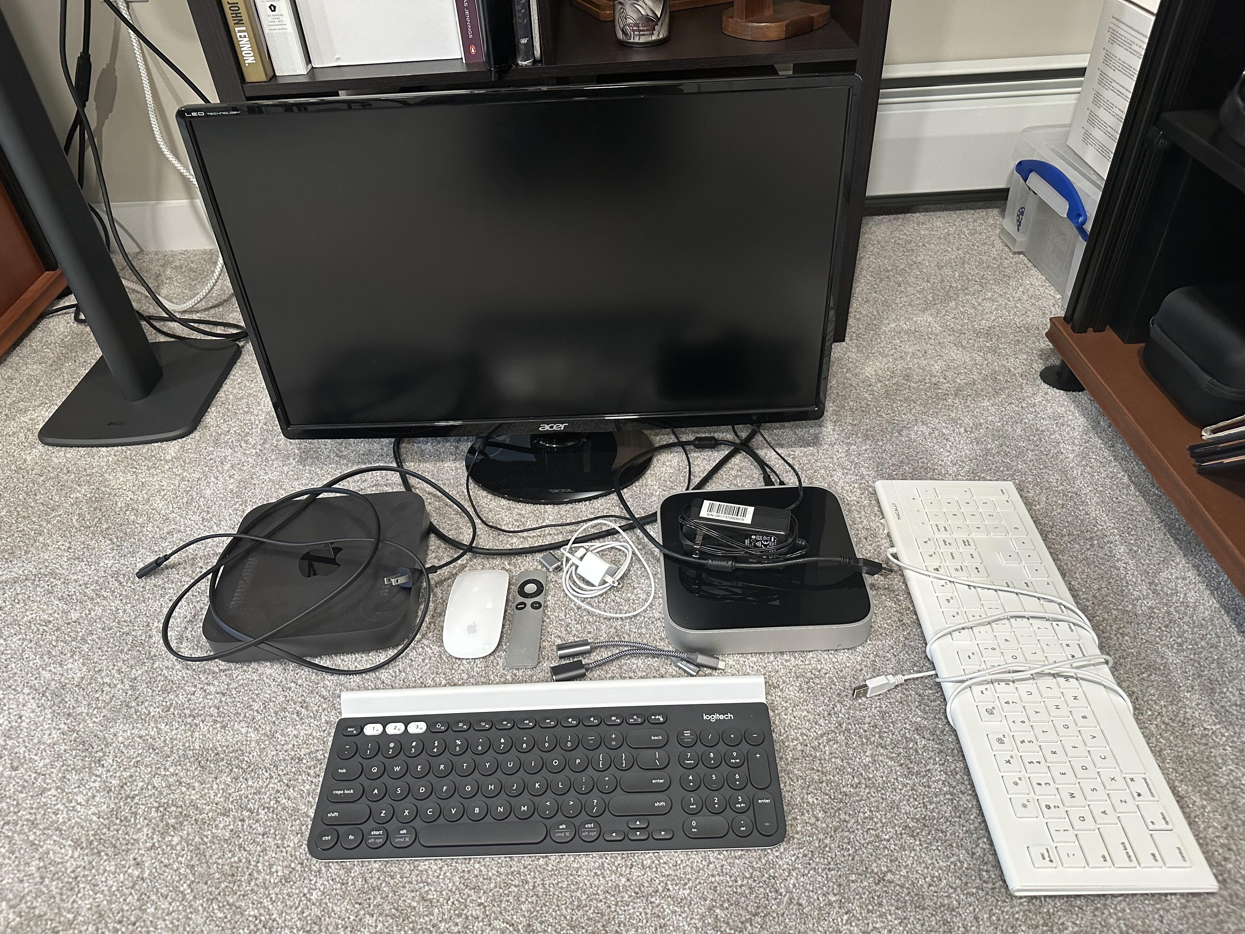 It consisted of the mac mini and a 10 TB USB disk to hold my library and Roon backups, a 27” monitor, wireless keyboard and mouse. The previous generation of Roon nucleus appliances were quite pricey compared to the Mac mini so I never really considered buying one. However when they announced the Nucleus One for $499 that changed everything. The nucleus has an advantage over the Mac mini as you can install an additional drive internally to hold your library so even with my $600 8TB SSD the price was actually less than the Mac mini and external USB drive. Obviously the Mac is capable of doing more than the Nucleus but I was only using it as a Roon server. So the primary goal was to simplify the setup and hopefully provide a more stable platform with higher up time. Replacing the Mac with the Nucleus One allowed me to get rid of the pieces below.