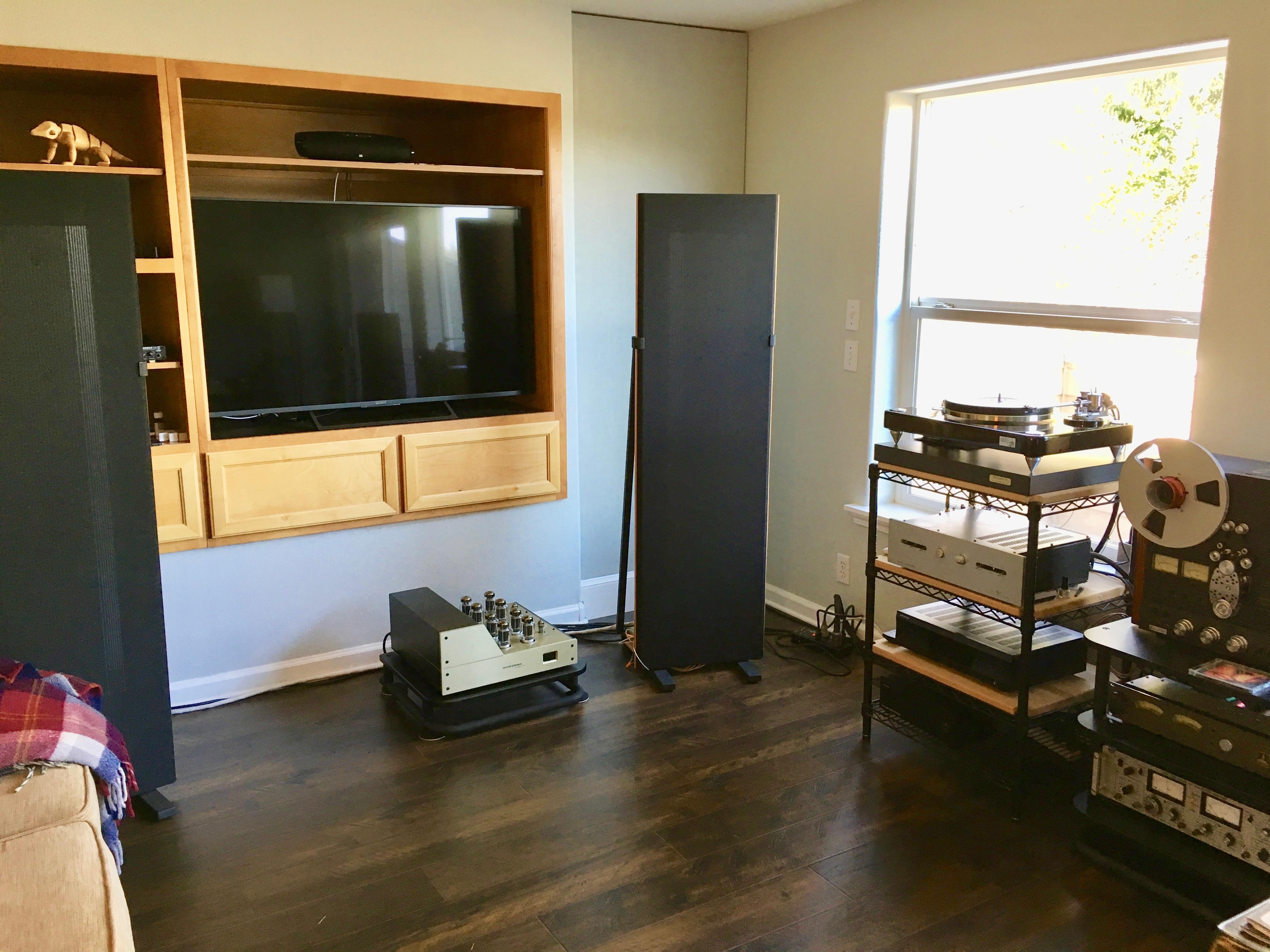jpelg Posted March 15, 2019 Report Posted March 15, 2019 On 3/13/2019 at 8:47 PM, Kerry said: Love the Maggies Kerry, Wendell Diller came into town last week for his latest roadshow, demo-ing these: (pic is not from the shop where I heard them, but I don't have a decent pic from that night) Inside panels are for mid & upper freqs, while outer panels are for lows. 1