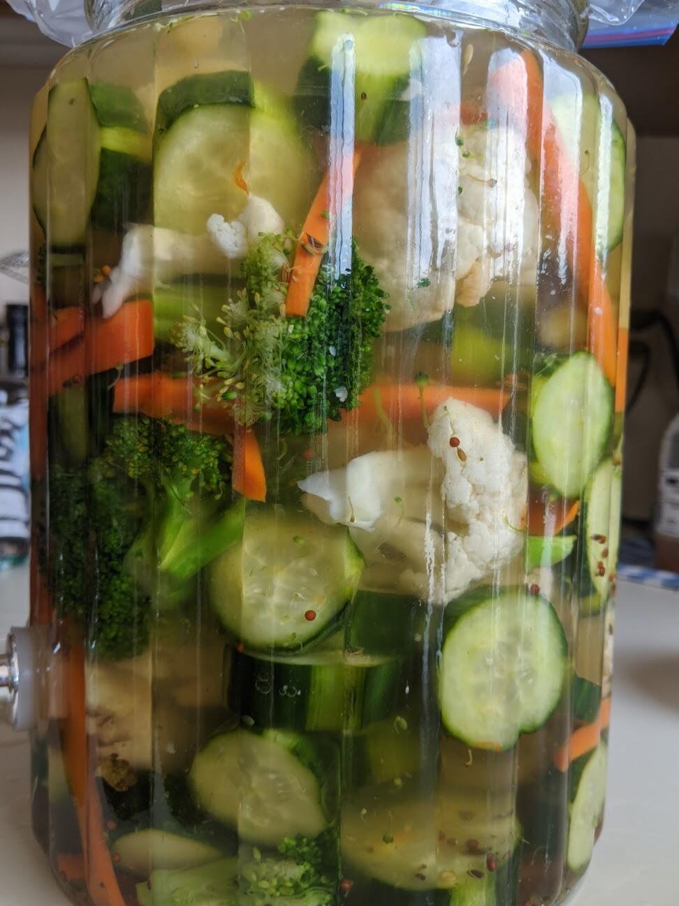 Quickles Vietnamese-style are easy: just a pinch of salt and a bigger pinch of sugar, stir, let sit for a couple hours.  I dunno his recipe.  I haven't made Kimchi or Sauerkraut in ages.