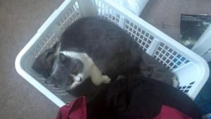 Re-doing laundry after Jax decided to make a bed out of the clean laundry basket. Thanks Jax.