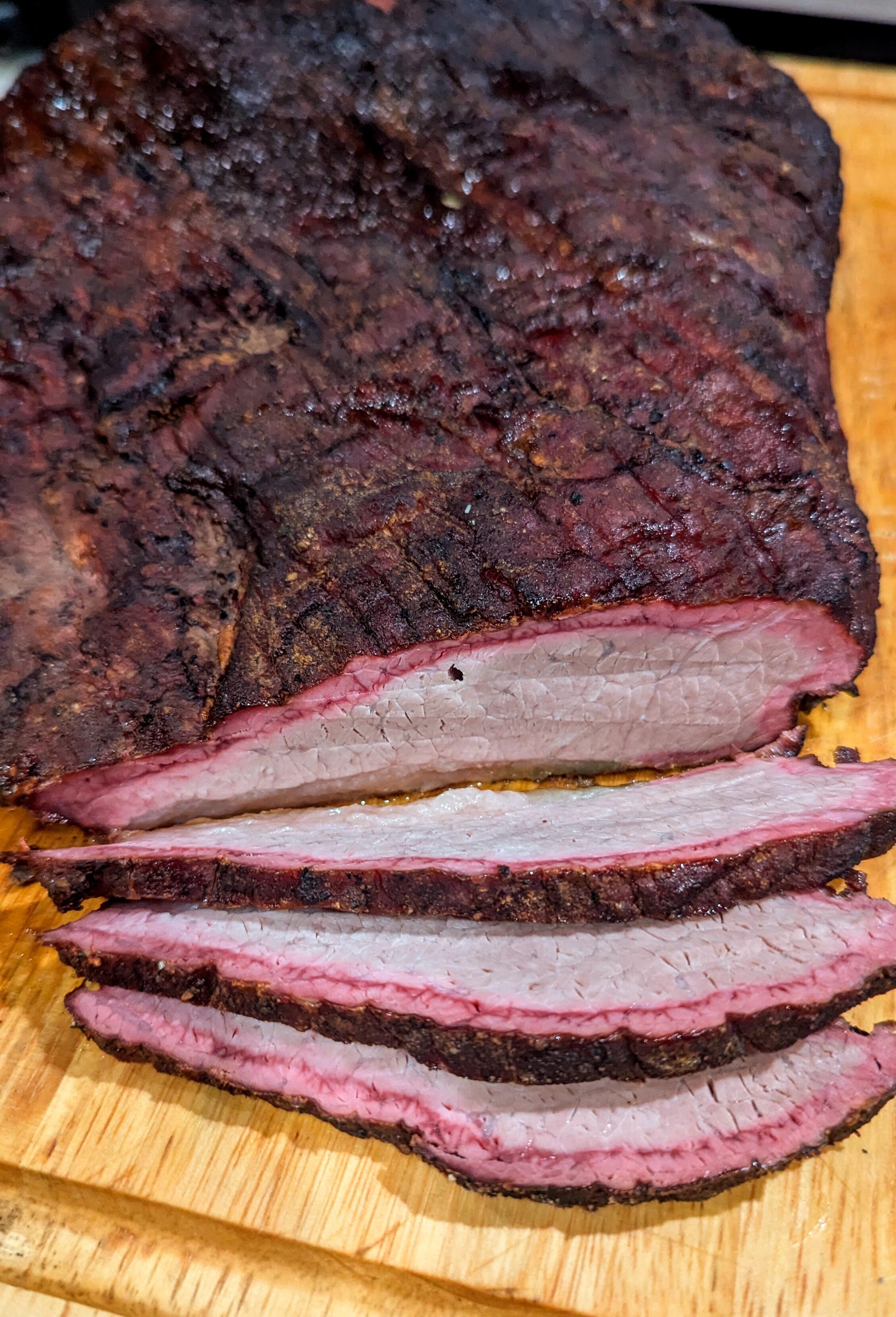 mikeymad Posted March 23 Report Posted March 23 first brisket smoke. 14 hours @ 225°, Got up to temp faster than I though. The end bit is a little dry. But a center cut is really tasty. Room for improvement.. She'll eat .. 7 1