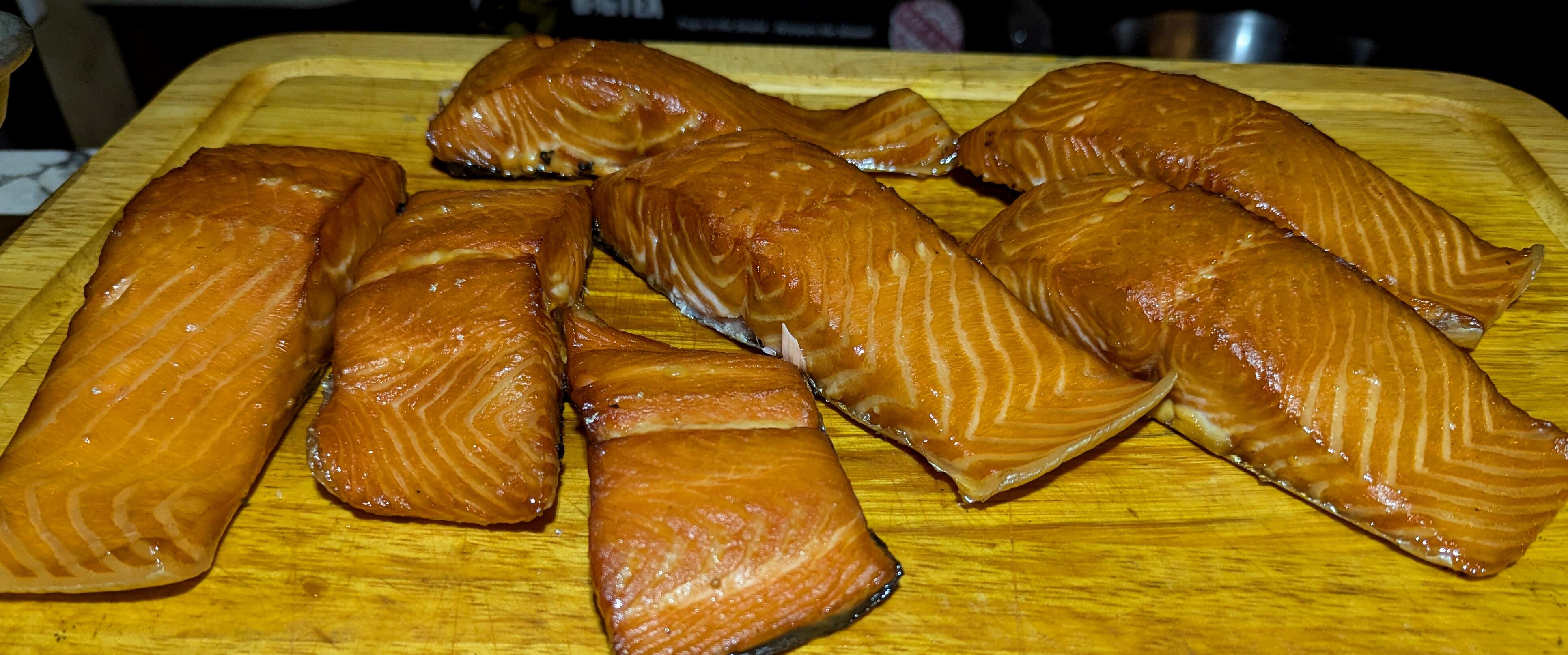 mikeymad Posted November 12, 2024 Report Posted November 12, 2024 Second run at smoked salmon - so I did two... cured for about 16 hours - smoked @185F for just under 3 hours - internal 145F I hope that I got the salt level right - was too high on the first try. I would sample but I am full of pork belly right now... 2 1